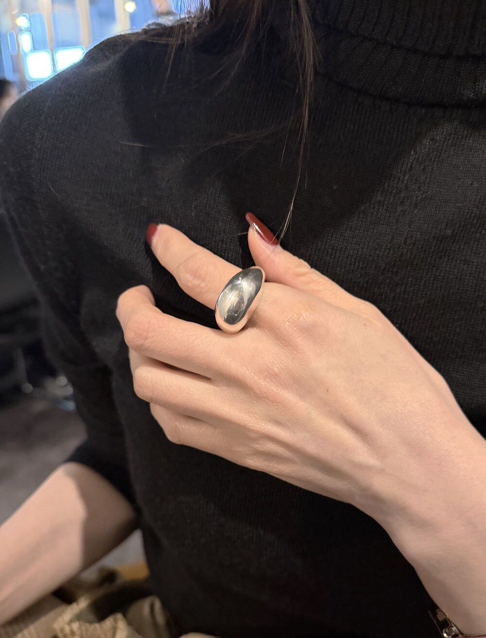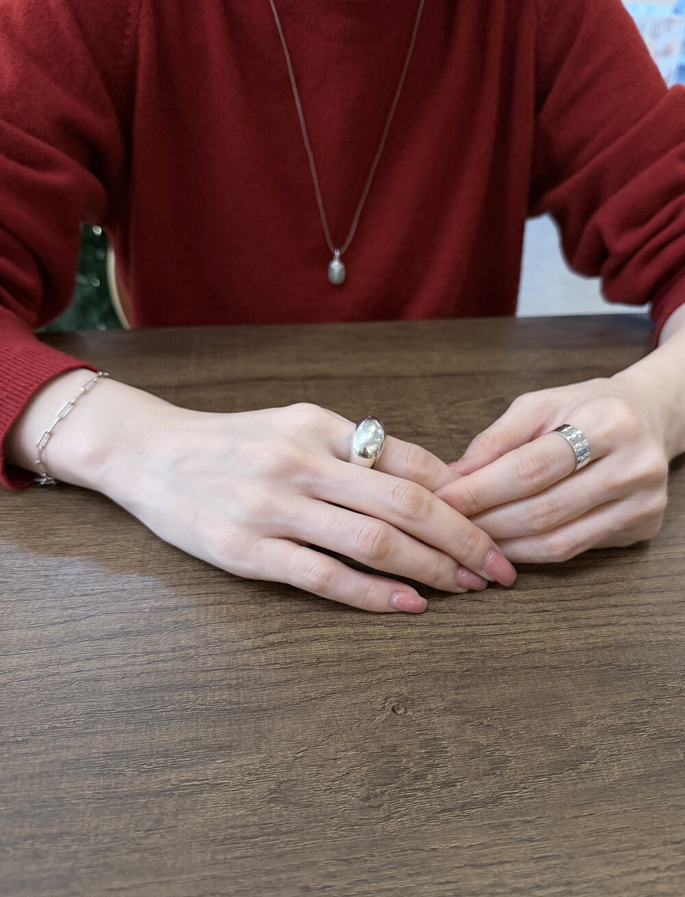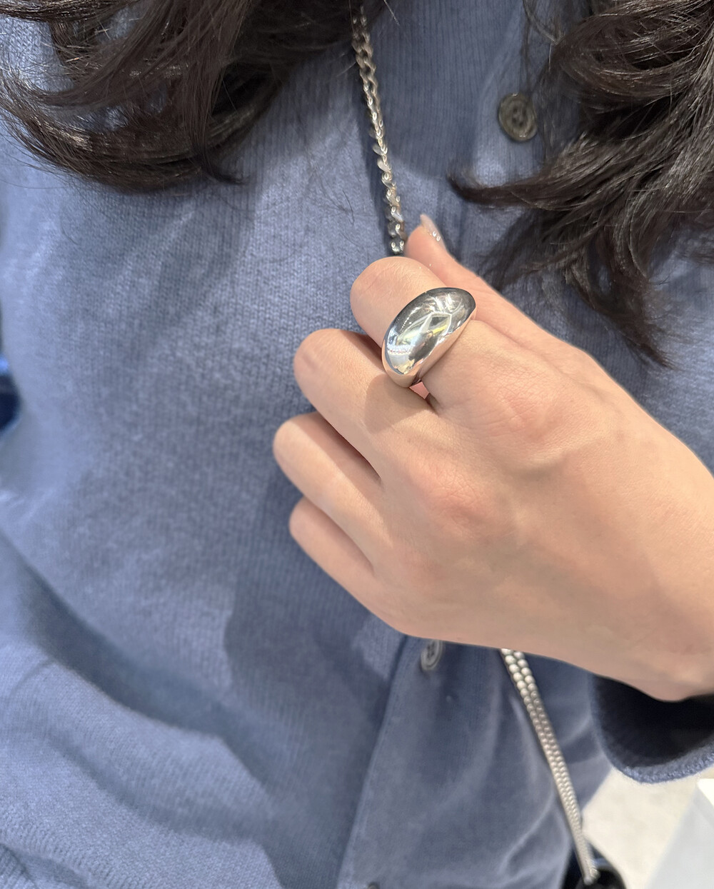 은(Sterling Silver)의 특성상 수분, 땀, 화장품 등에 자주 노출되거나 장기간 미착용 시 검게 변색될 수 있습니다.