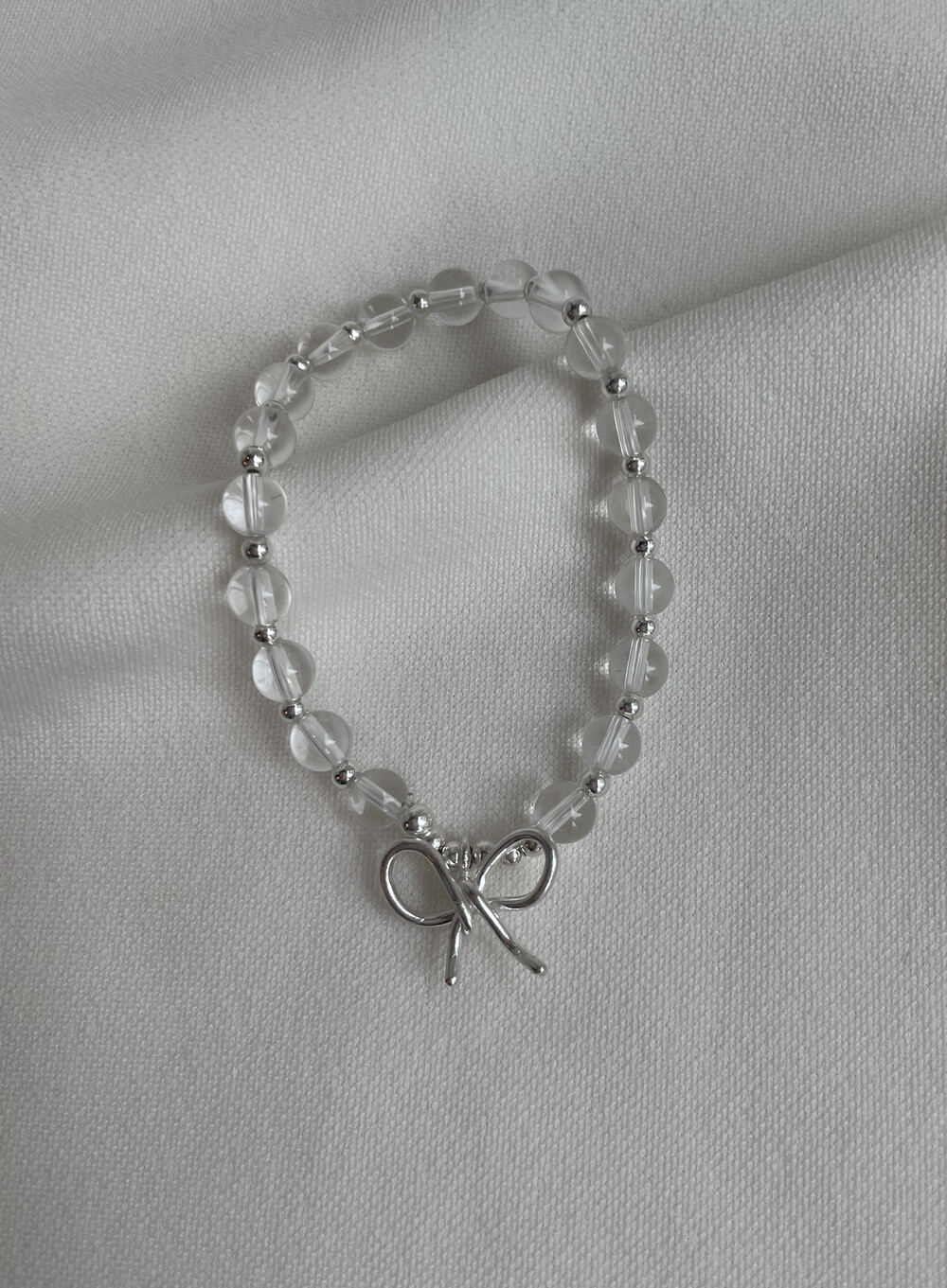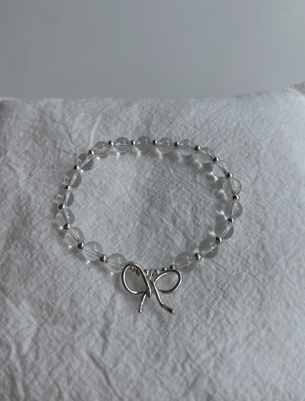 리본 장식과 크리스탈 사이사이 은은하게 스며든 실버 디테일이 어우러져