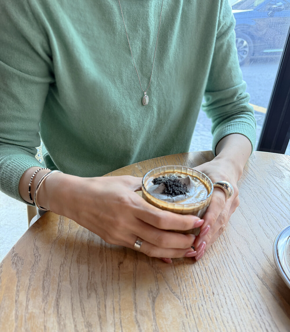 검게 유화 처리한 은제품과 원석이 세팅된 제품은 세척제 사용을 금해주세요.