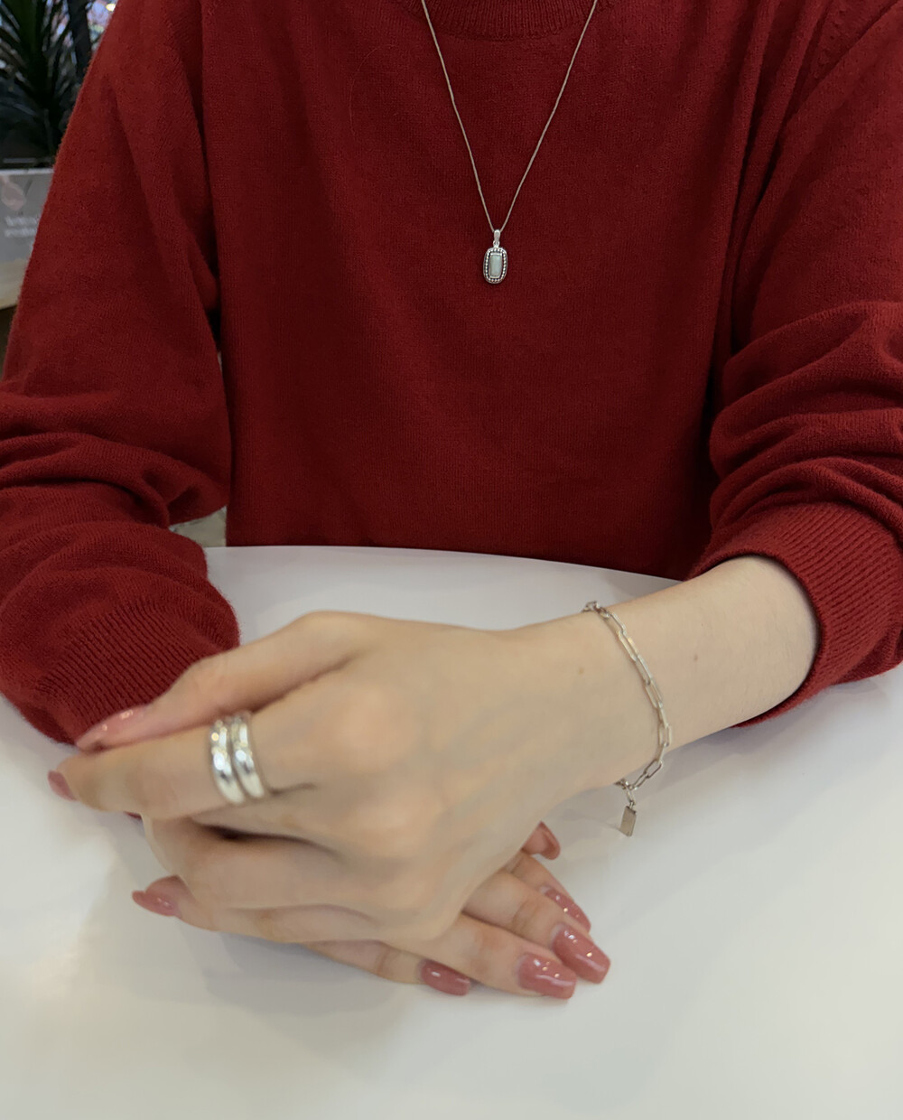 은(Sterling Silver)의 특성상 수분, 땀, 화장품 등에 자주 노출되거나 장기간 미착용 시 검게 변색될 수 있습니다.