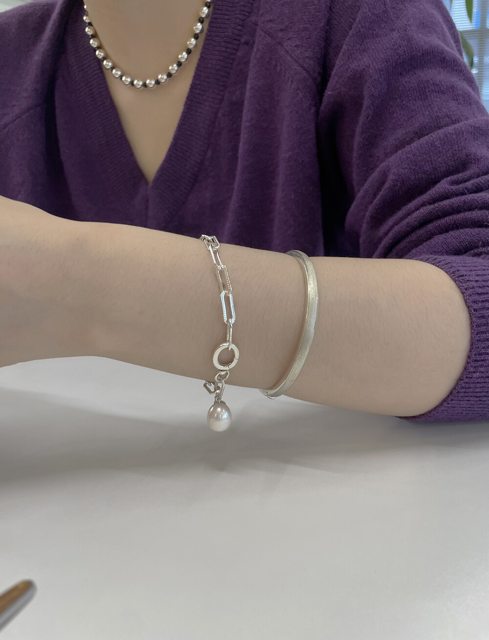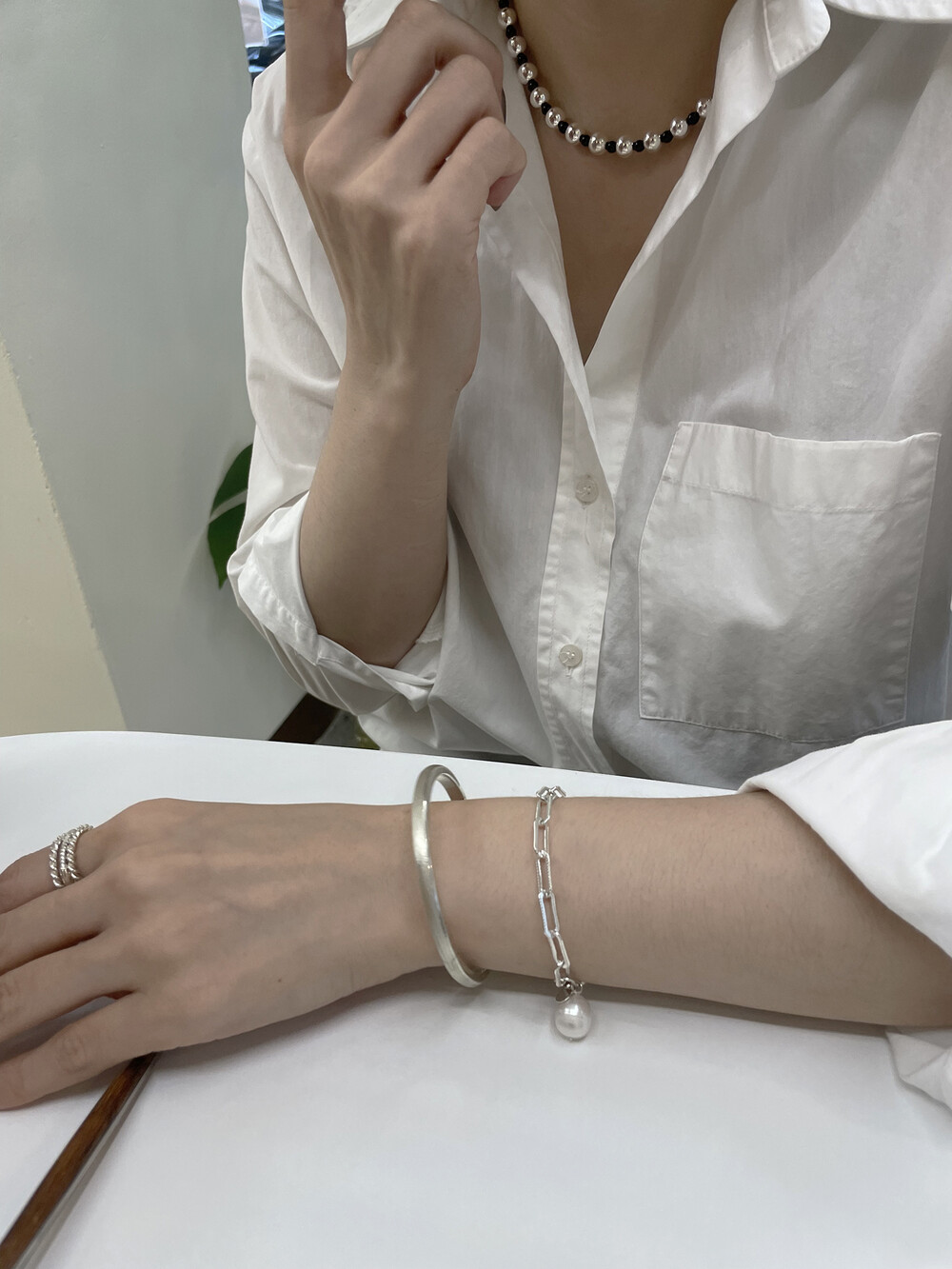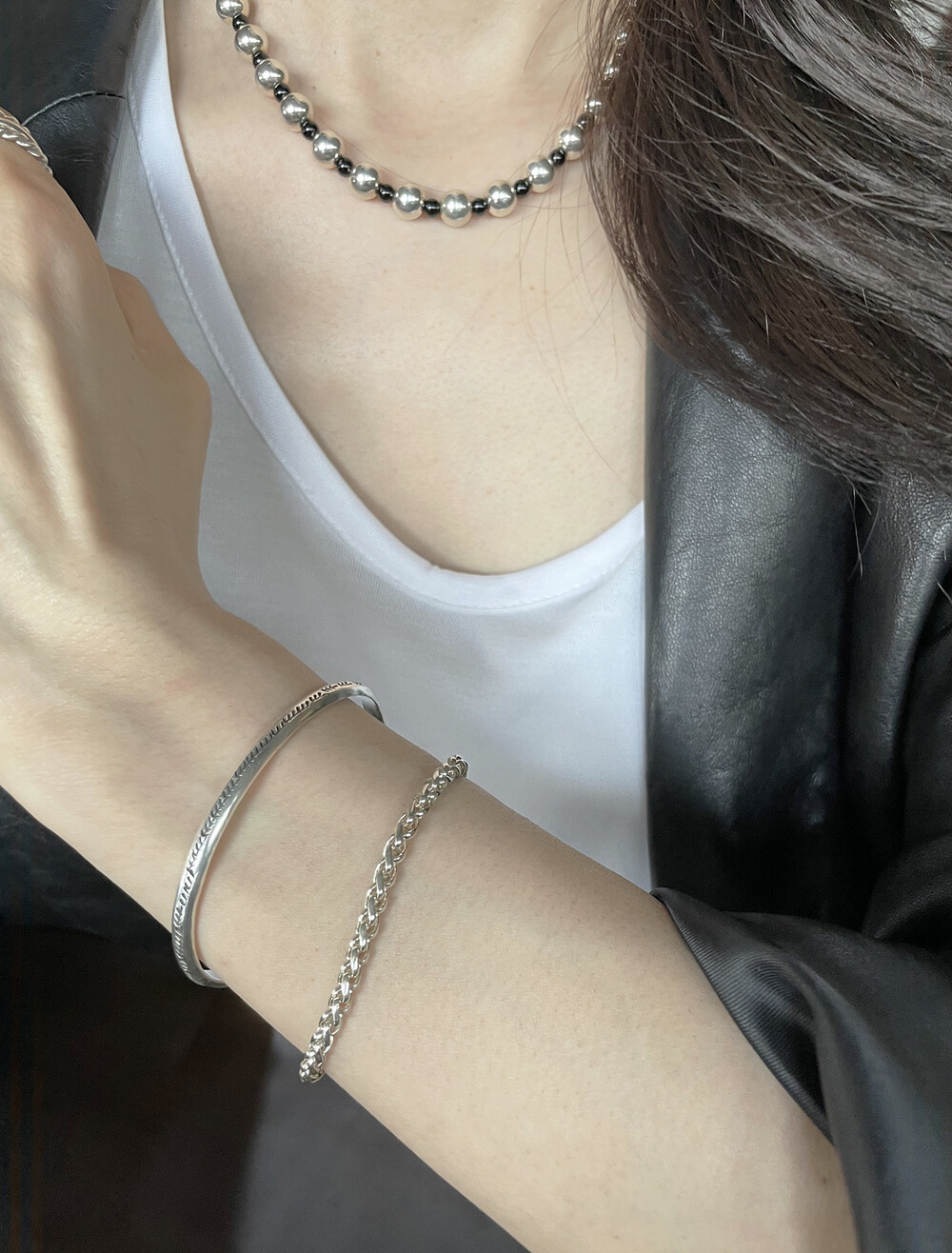은(Sterling Silver)의 특성상 수분, 땀, 화장품 등에 자주 노출되거나 장기간 미착용 시 검게 변색될 수 있습니다.