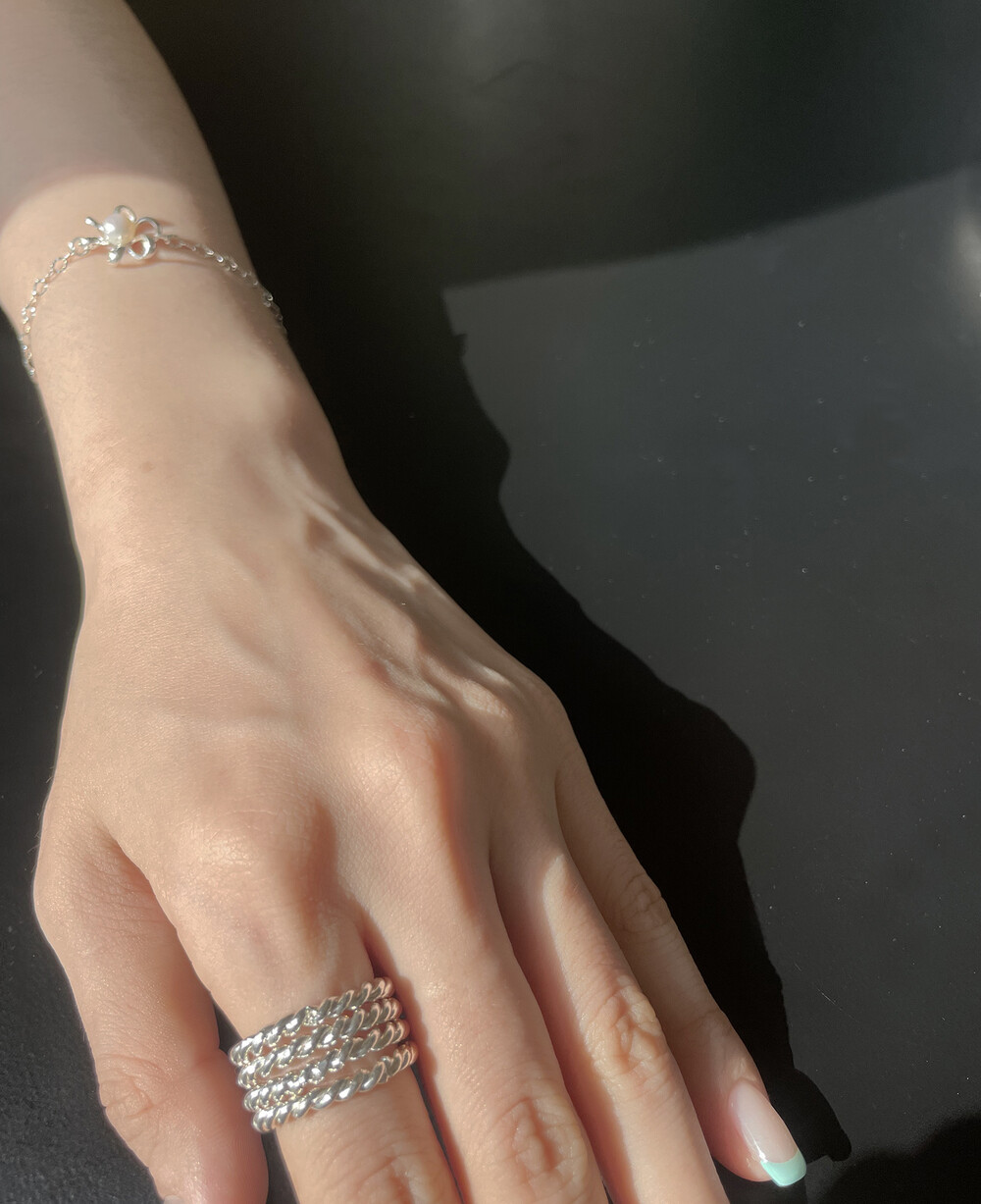 은(Sterling Silver)의 특성상 수분, 땀, 화장품 등에 자주 노출되거나 장기간 미착용 시 검게 변색될 수 있습니다.