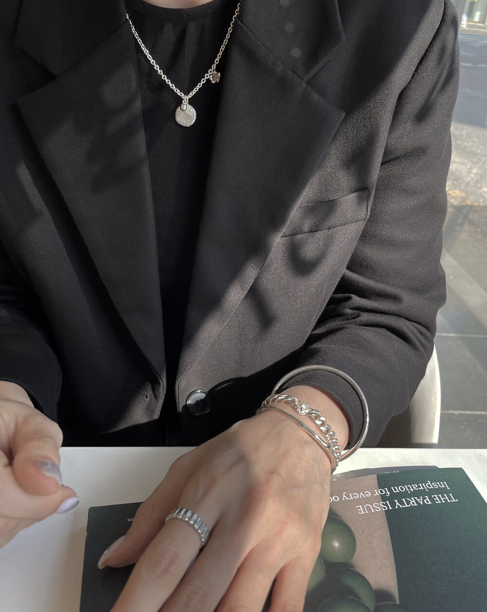 은(Sterling Silver)의 특성상 수분, 땀, 화장품 등에 자주 노출되거나 장기간 미착용 시 검게 변색될 수 있습니다.