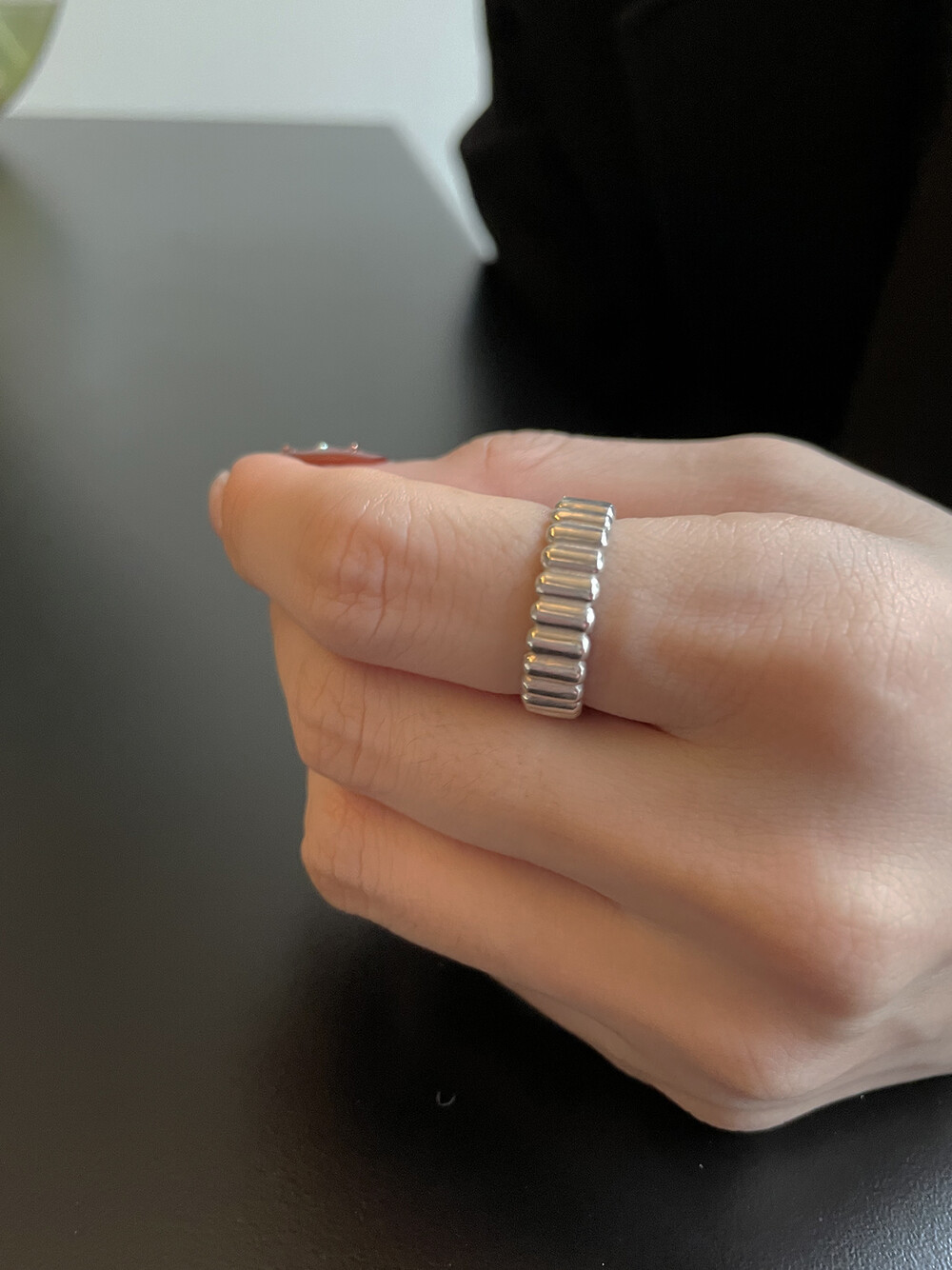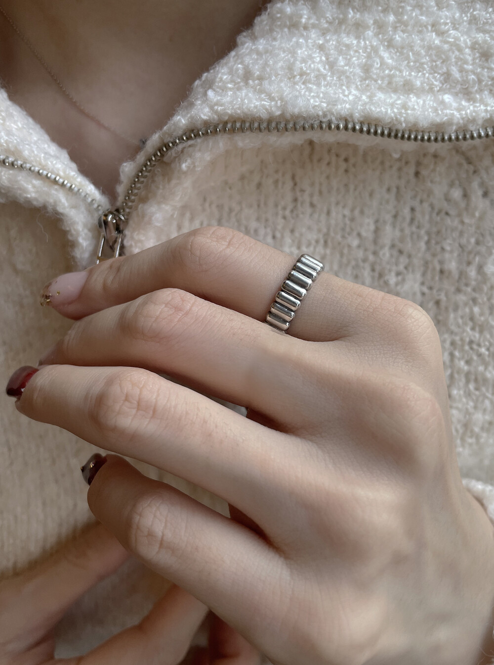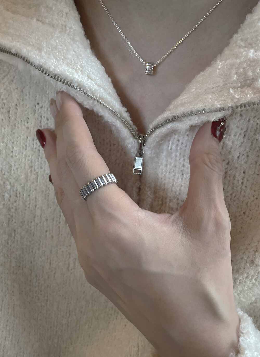 은(Sterling Silver)의 특성상 수분, 땀, 화장품 등에 자주 노출되거나 장기간 미착용 시 검게 변색될 수 있습니다.