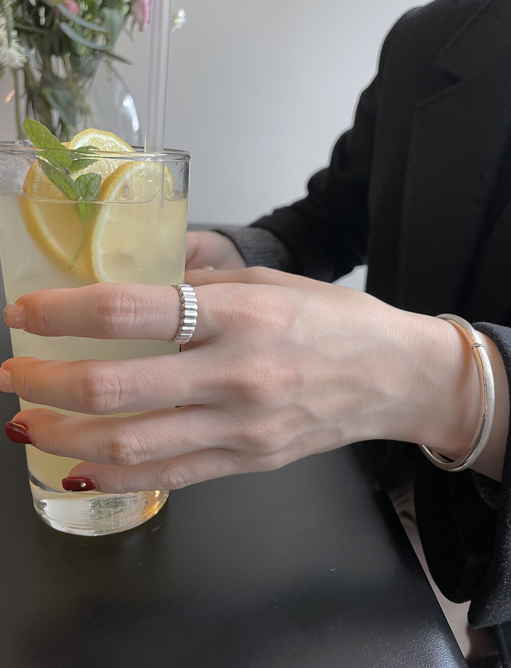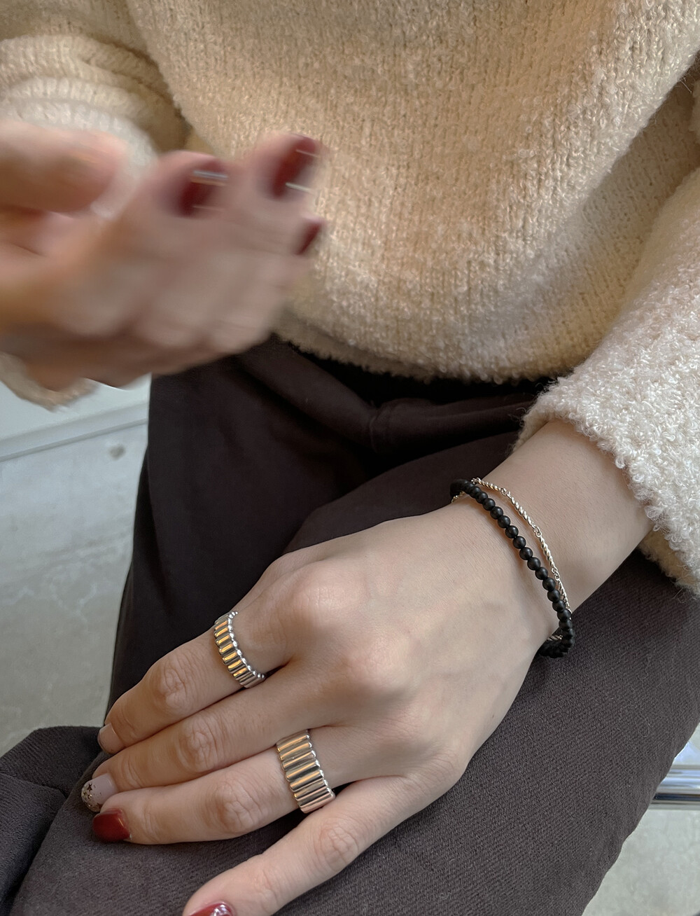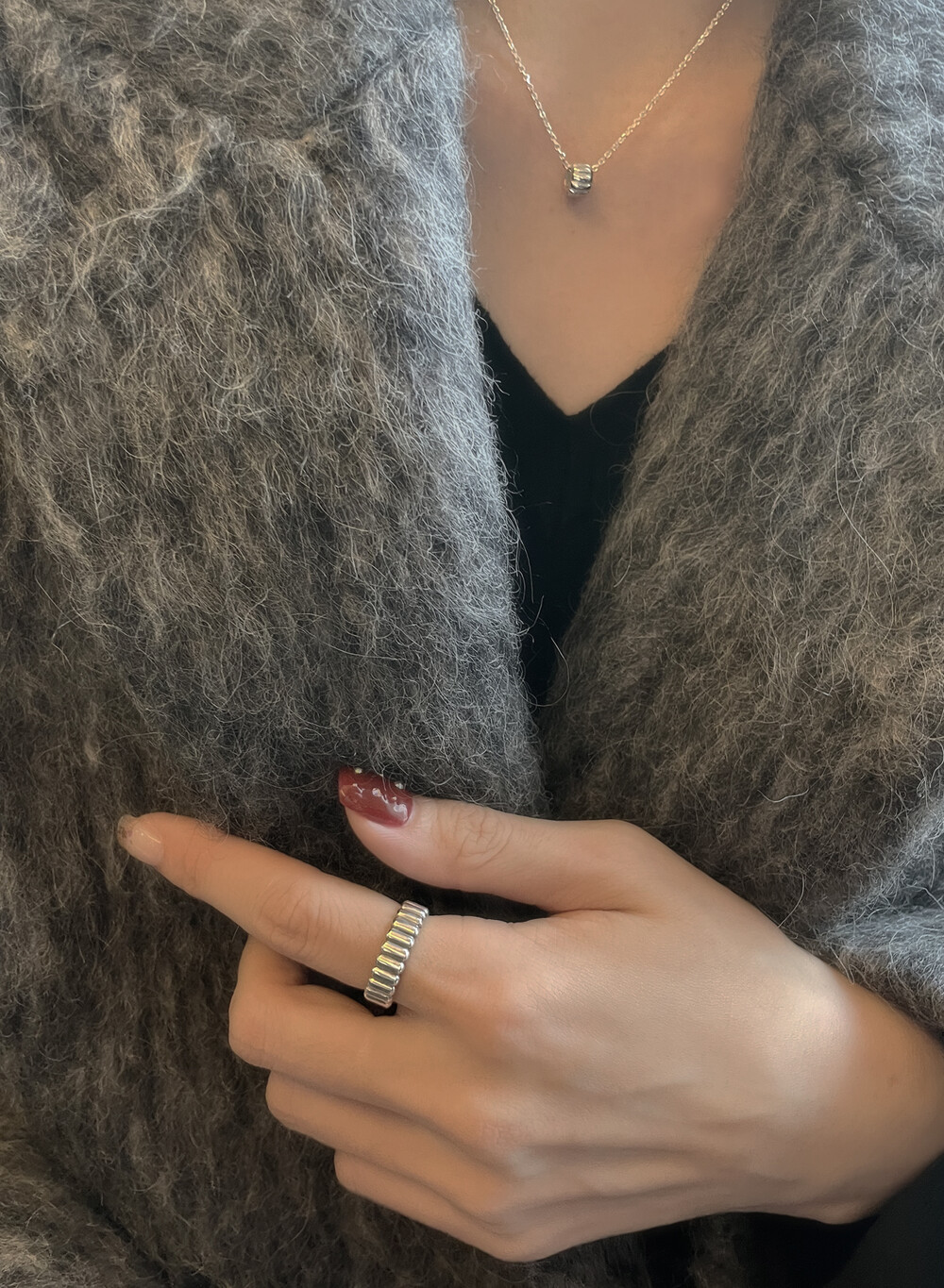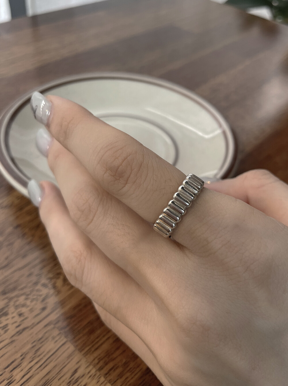 은(Sterling Silver)의 특성상 수분, 땀, 화장품 등에 자주 노출되거나 장기간 미착용 시 검게 변색될 수 있습니다.