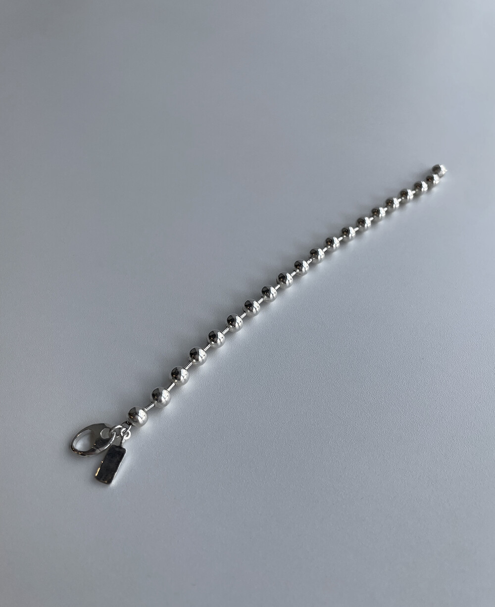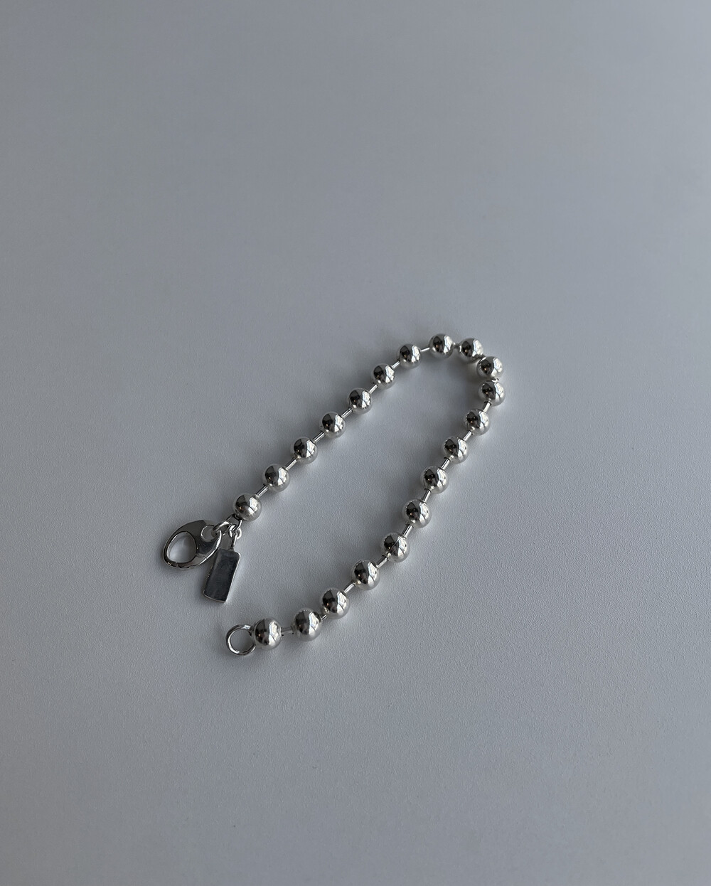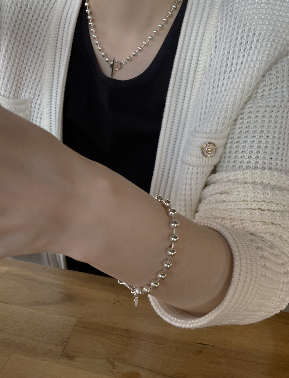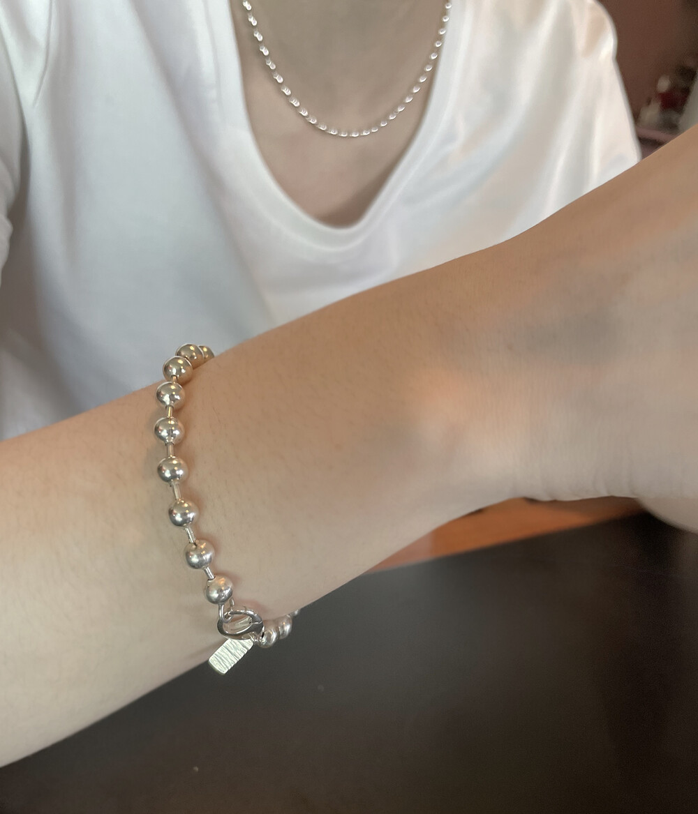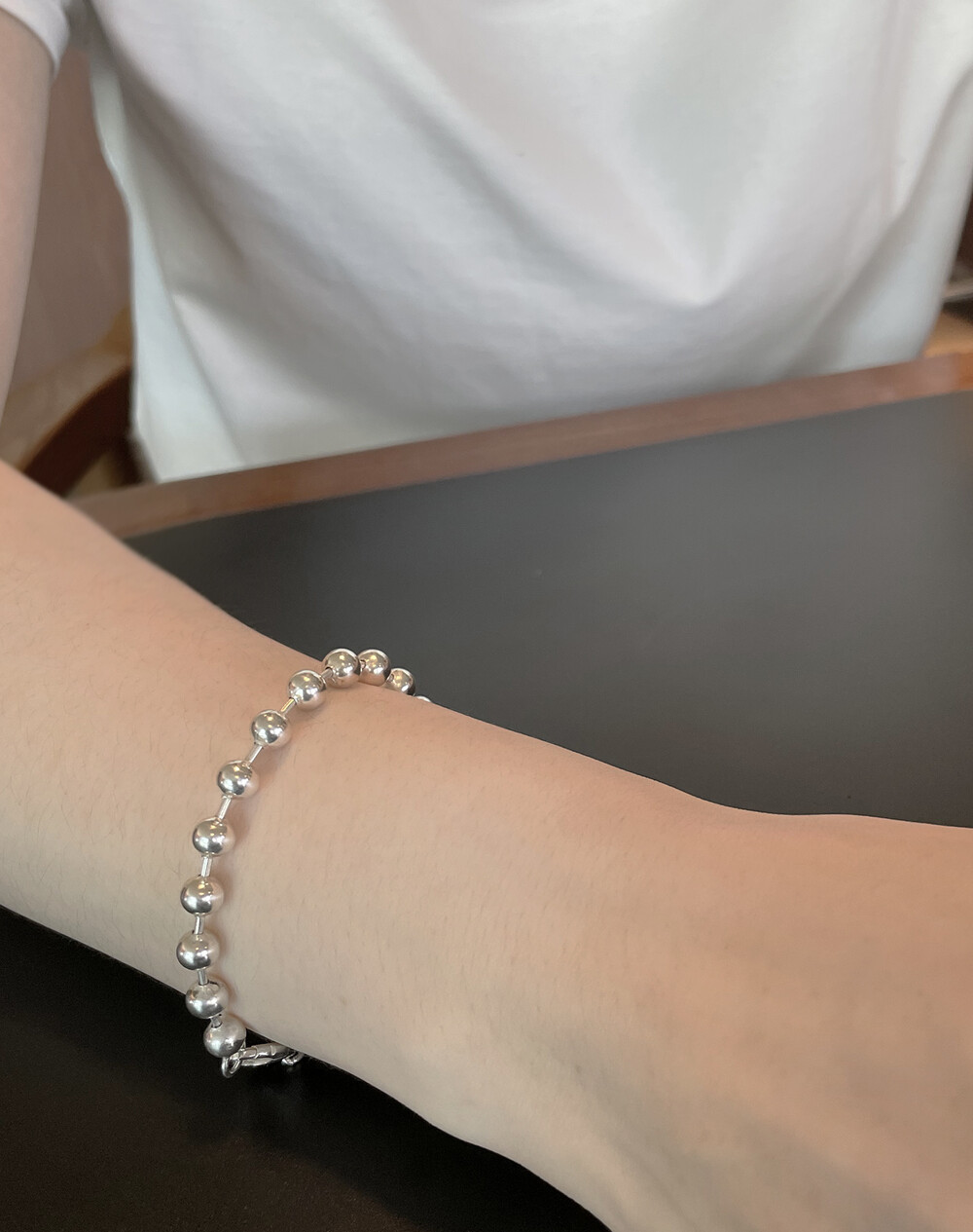 현대적인 디자인의 실버 볼 체인 팔찌로 부드럽게 손목을 감싸며,