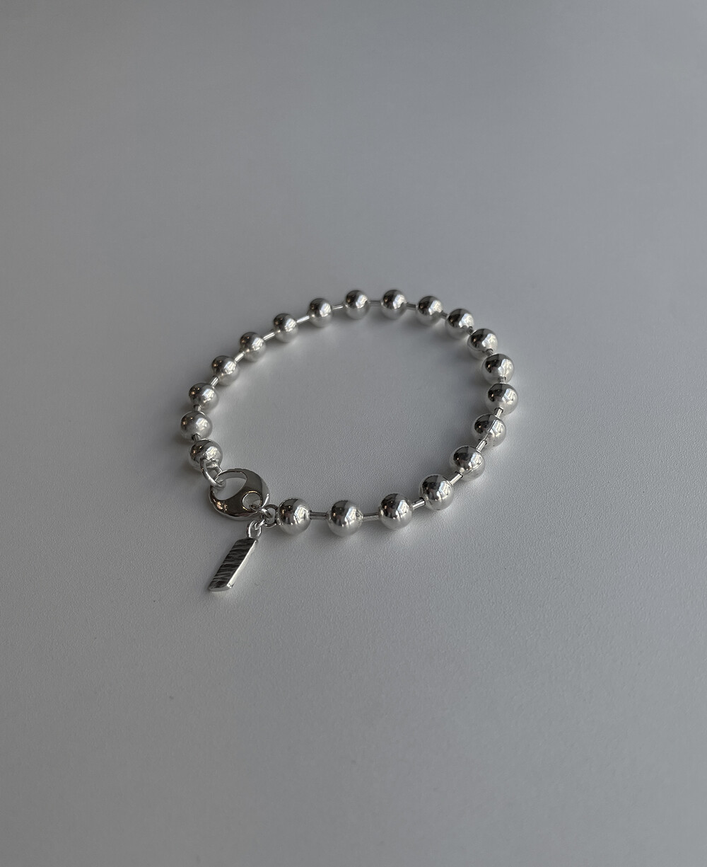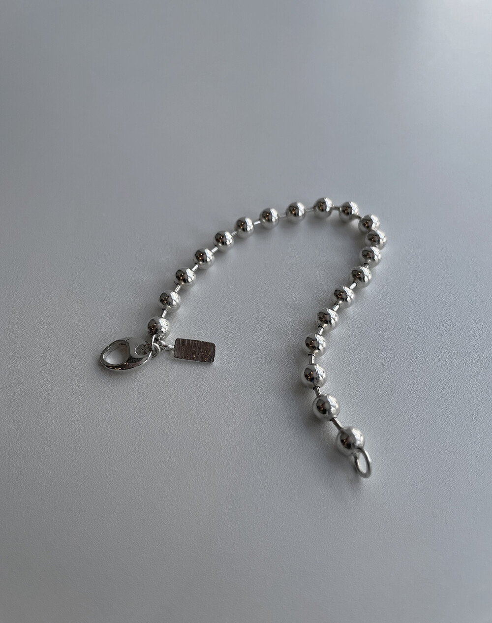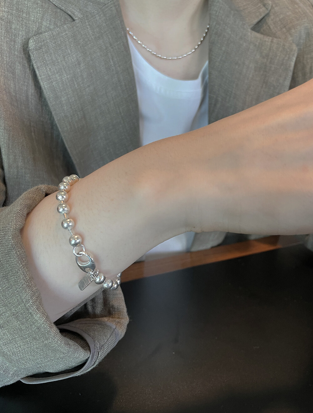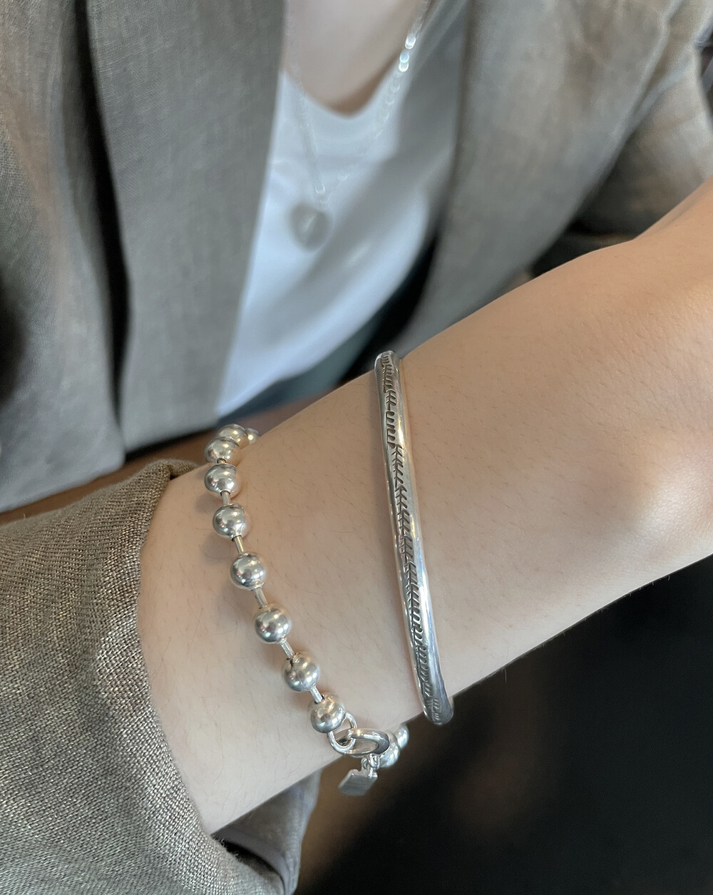 현대적인 디자인의 실버 볼 체인 팔찌로 부드럽게 손목을 감싸며,