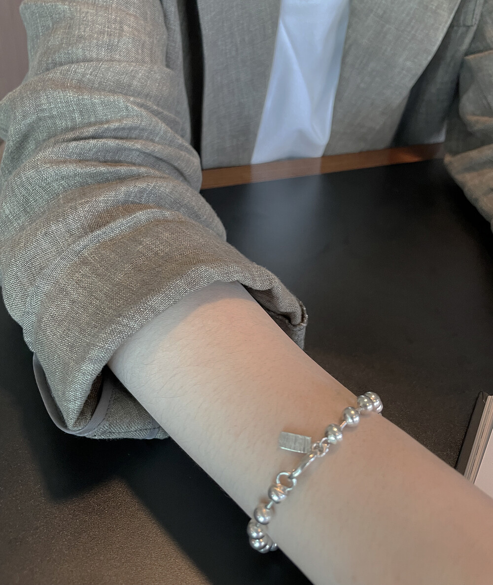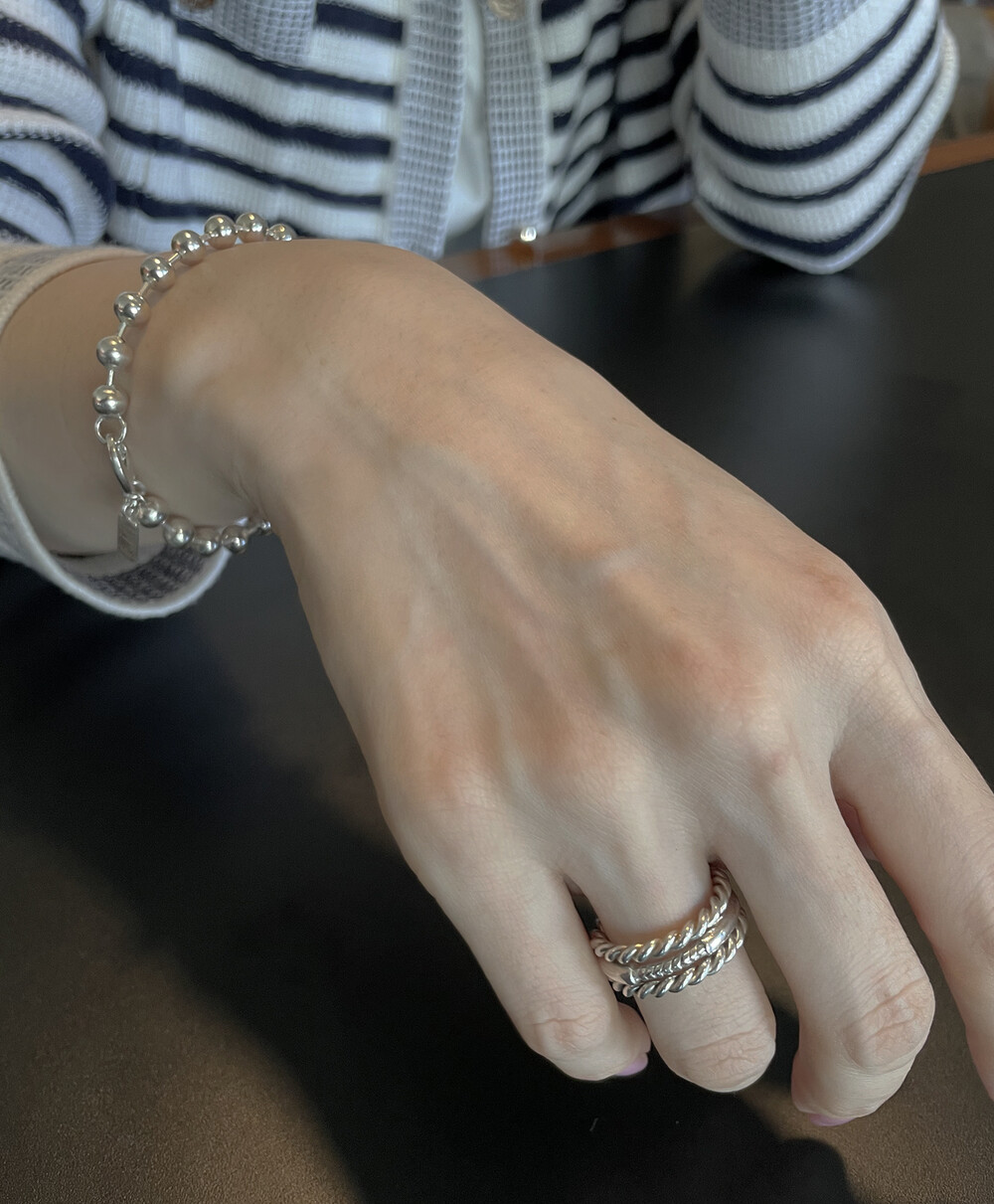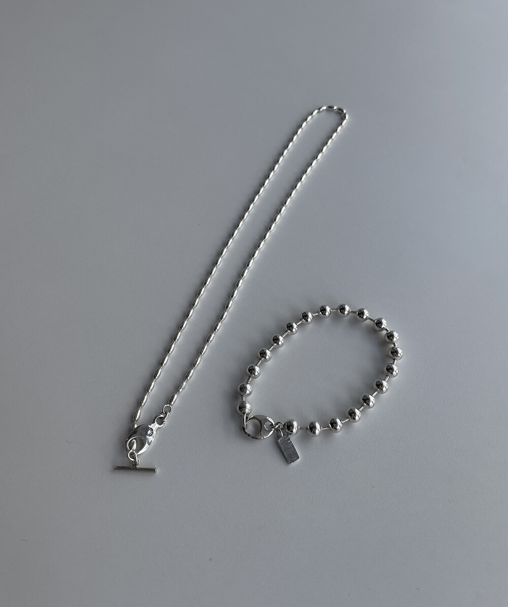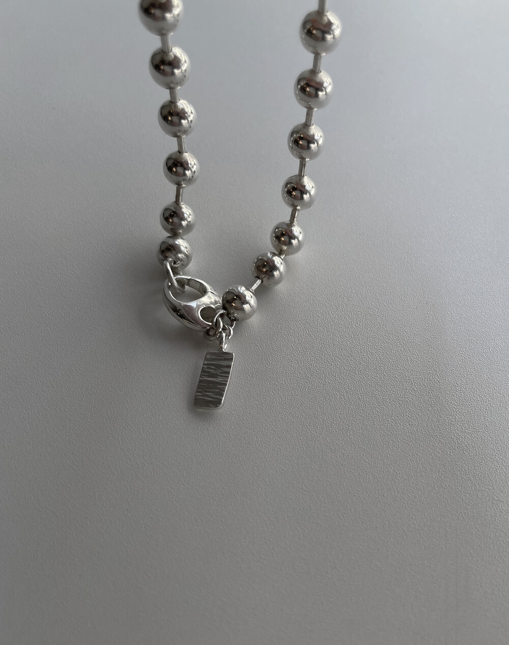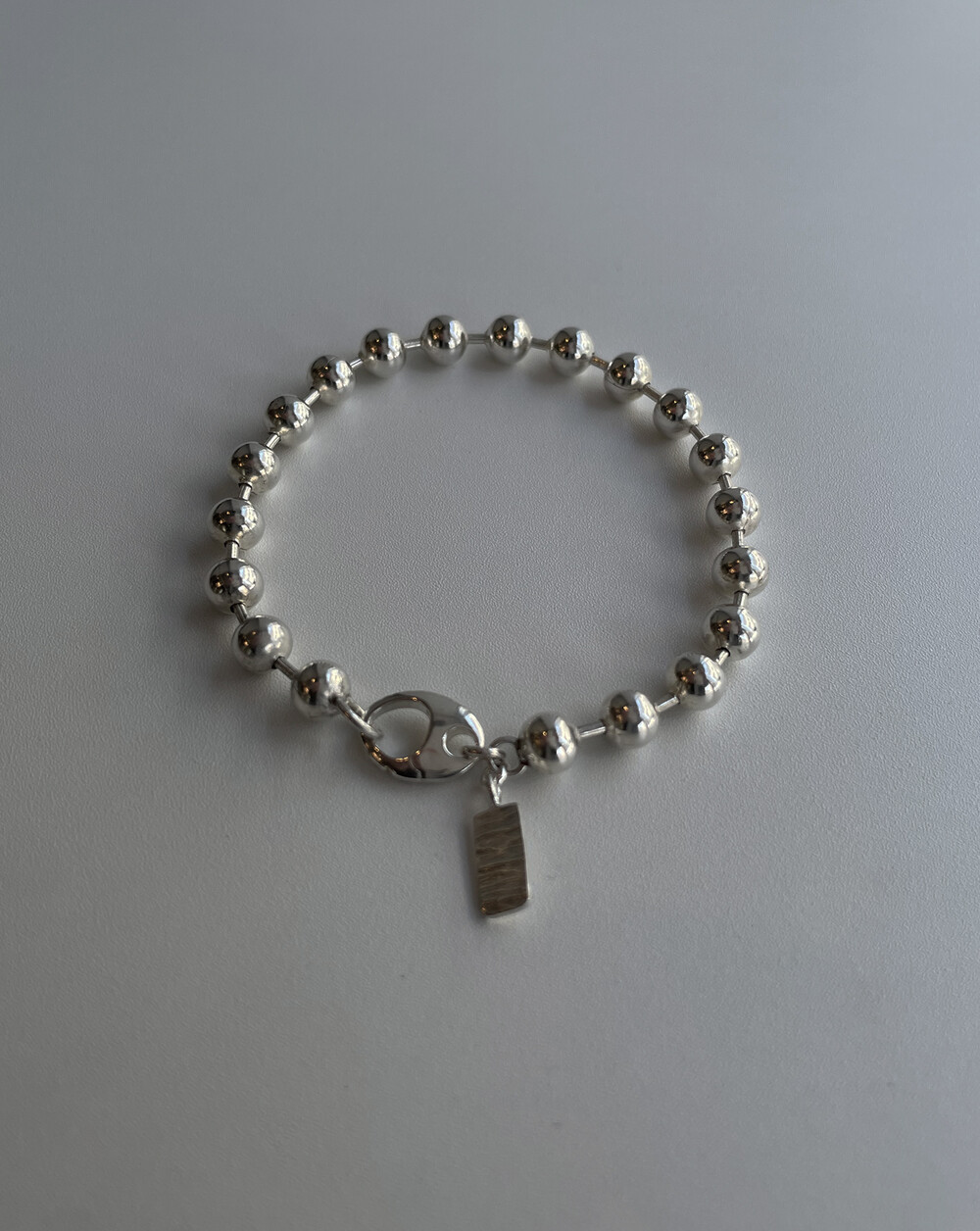 현대적인 디자인의 실버 볼 체인 팔찌로 부드럽게 손목을 감싸며,