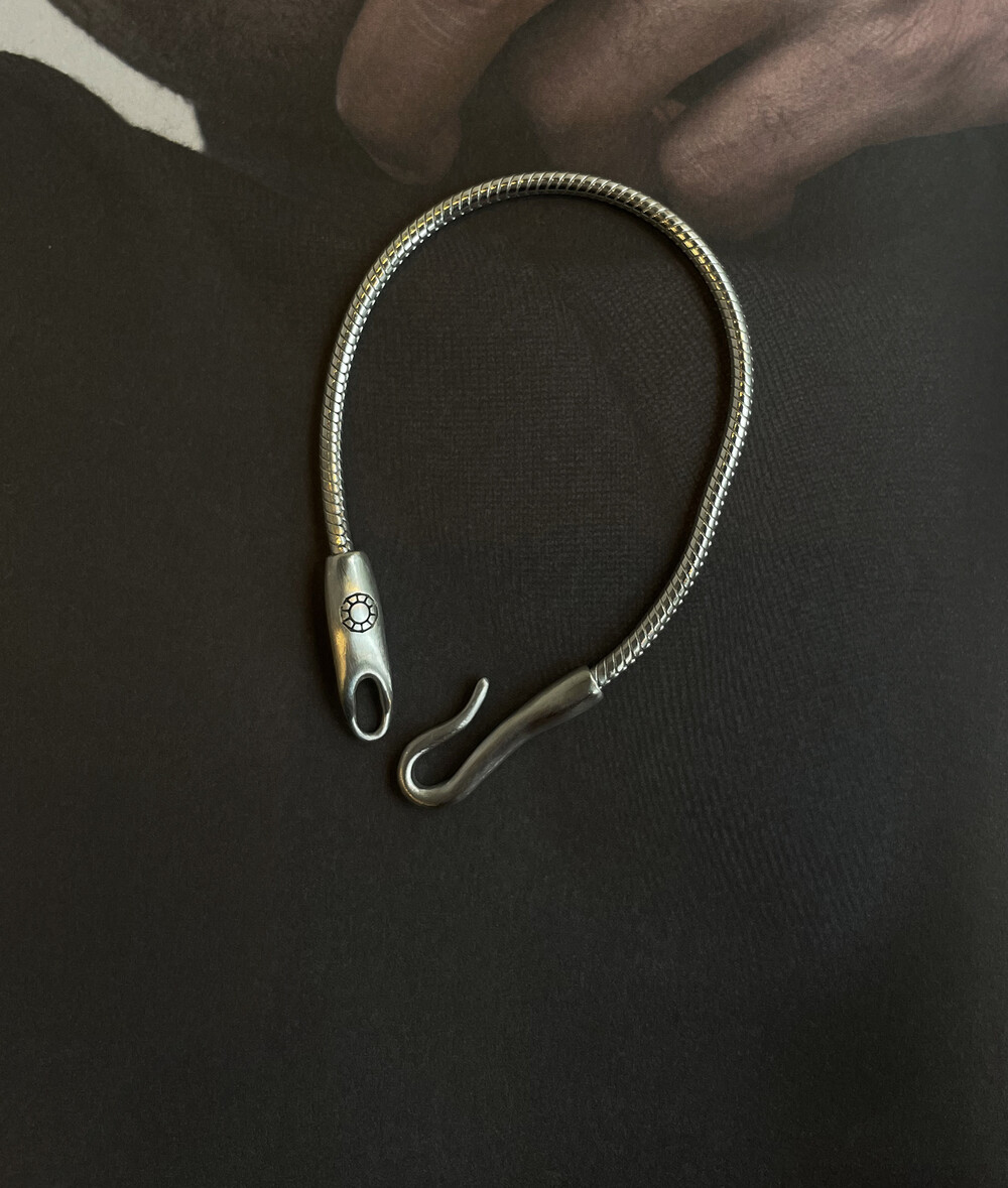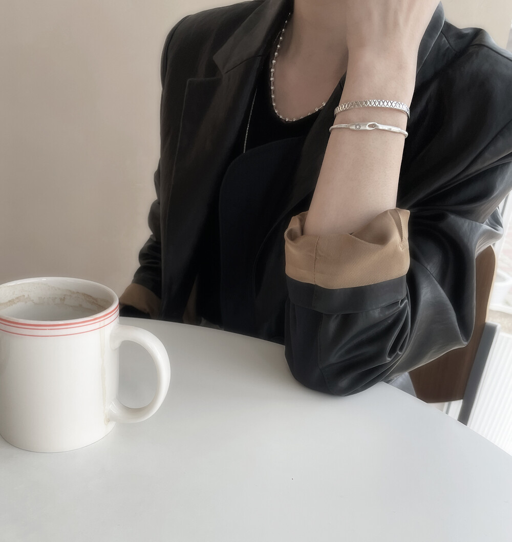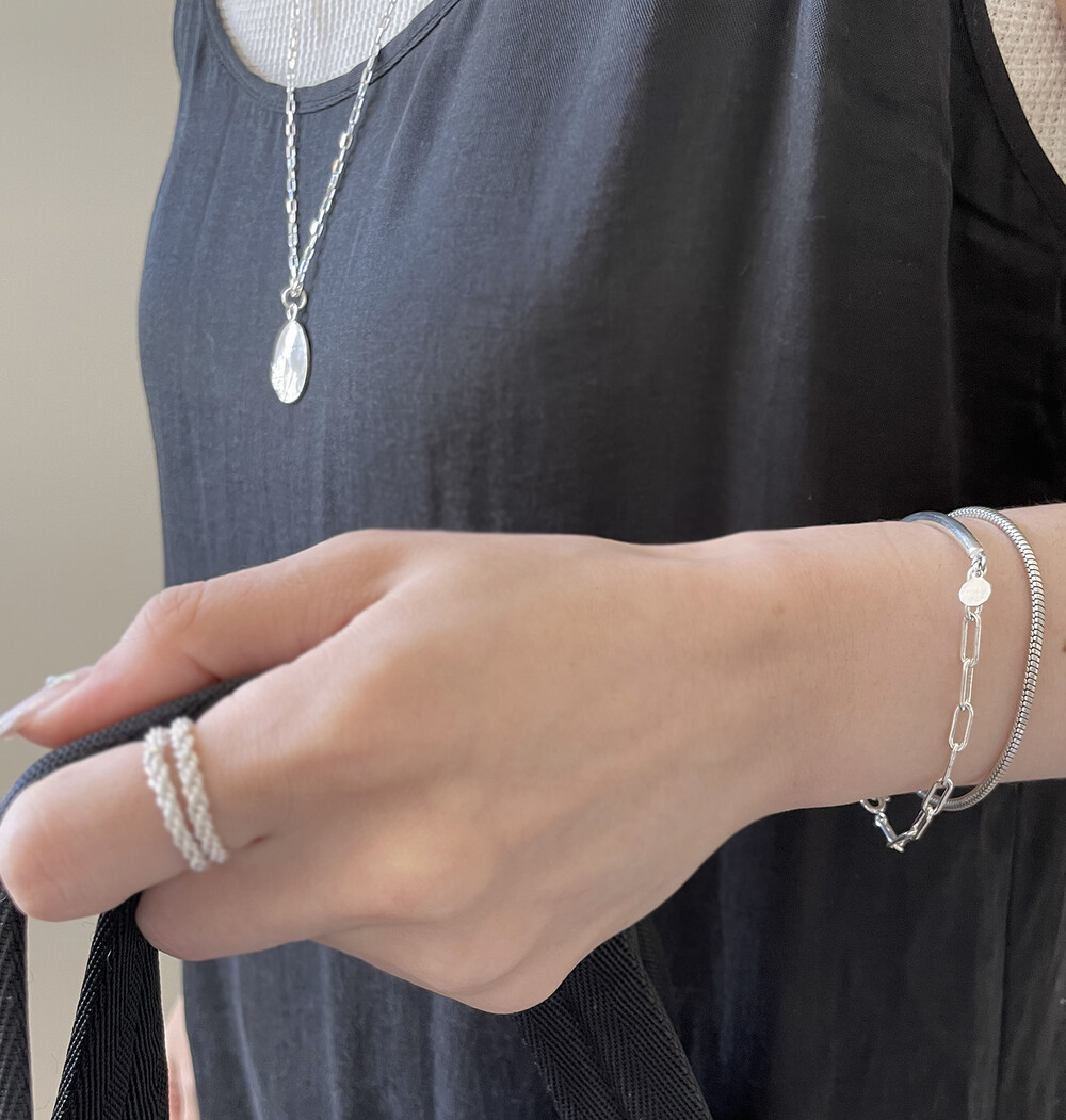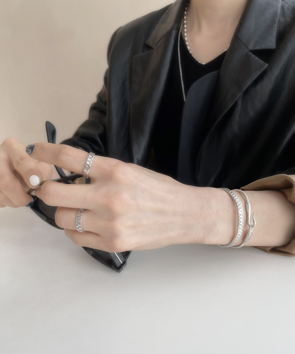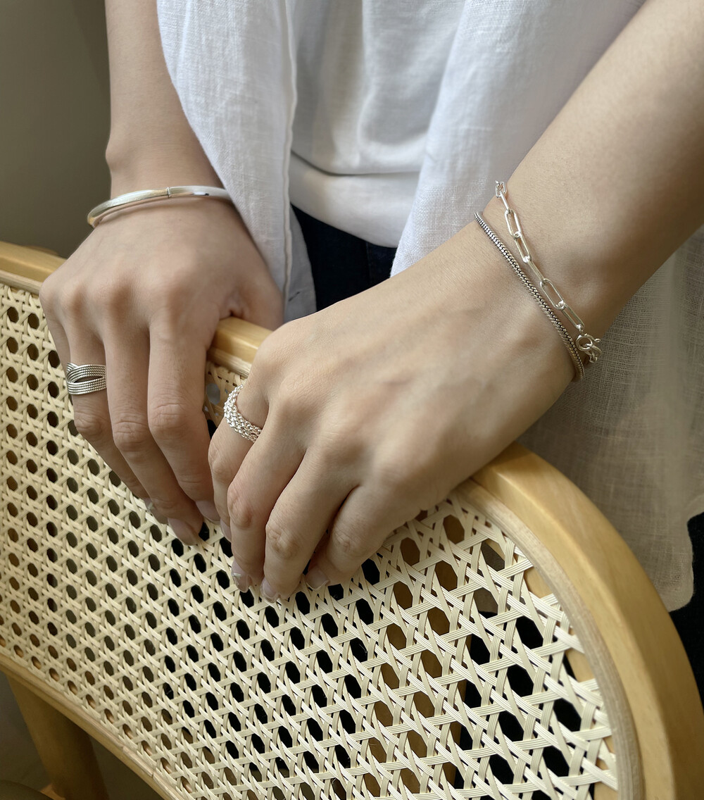 매트하며 유니크한 고리 장식이 특징인 팔찌입니다.