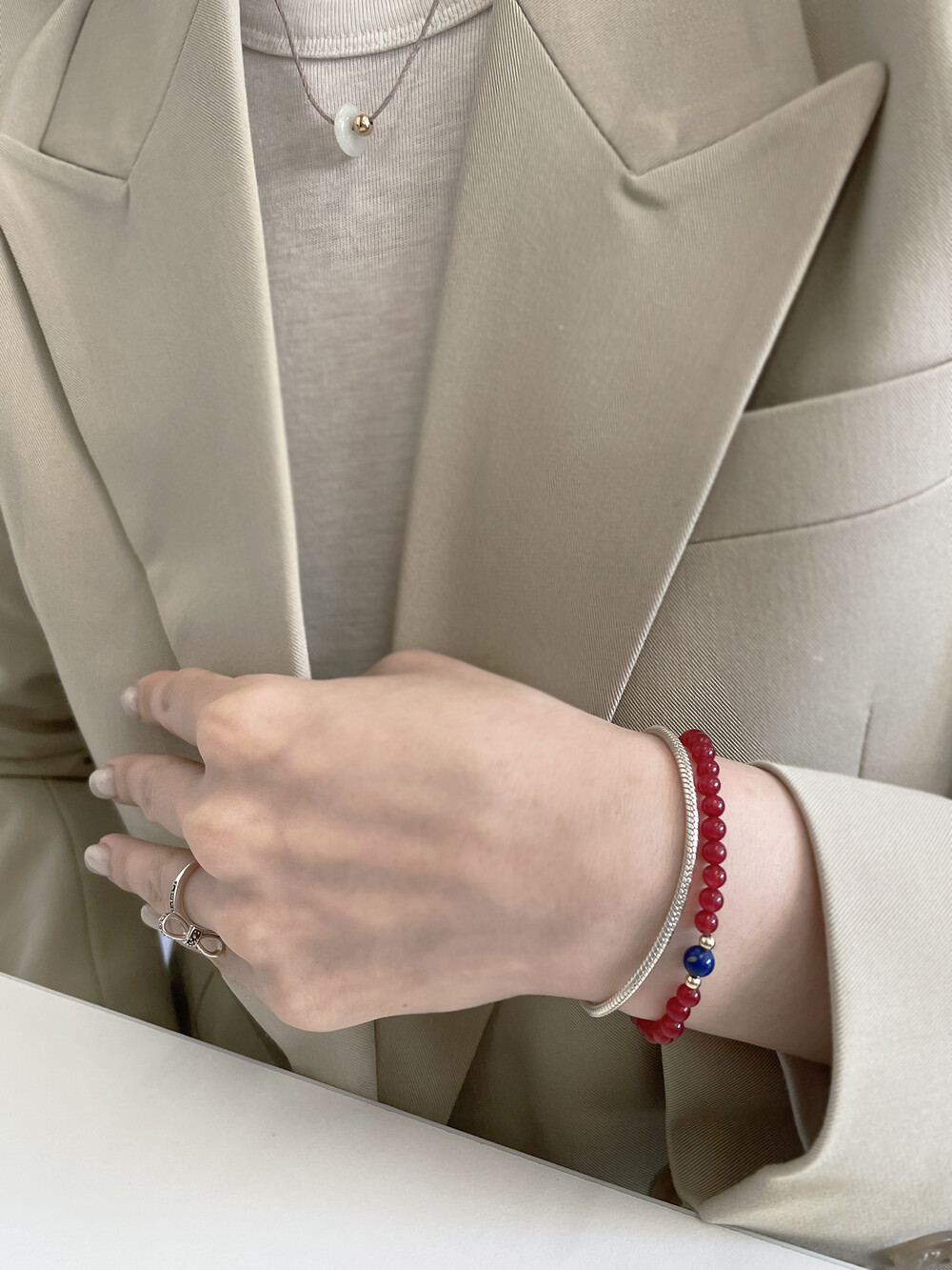 오롯에서는 팔찌의 총 길이가 아닌 손목둘레를 기준으로 제작합니다.