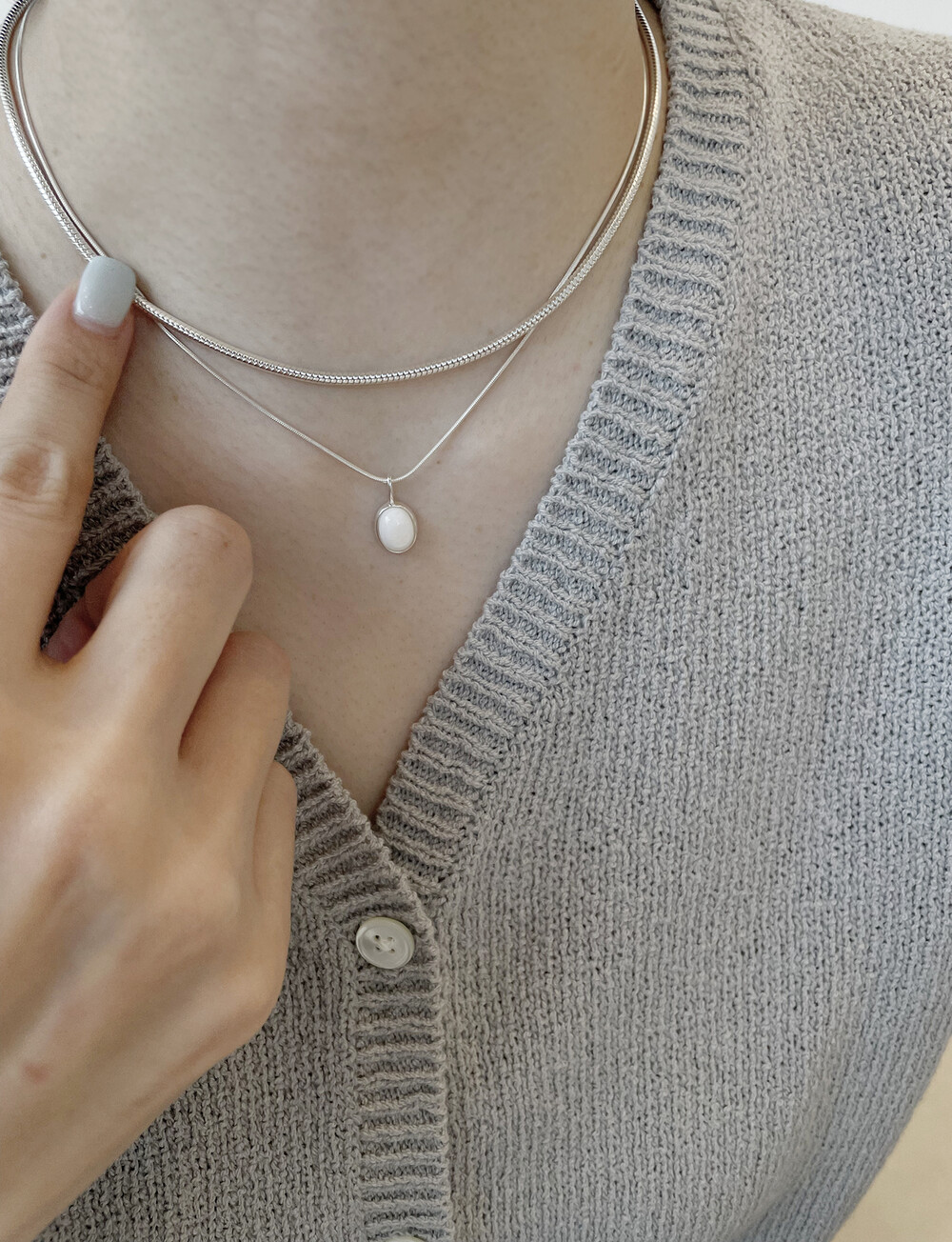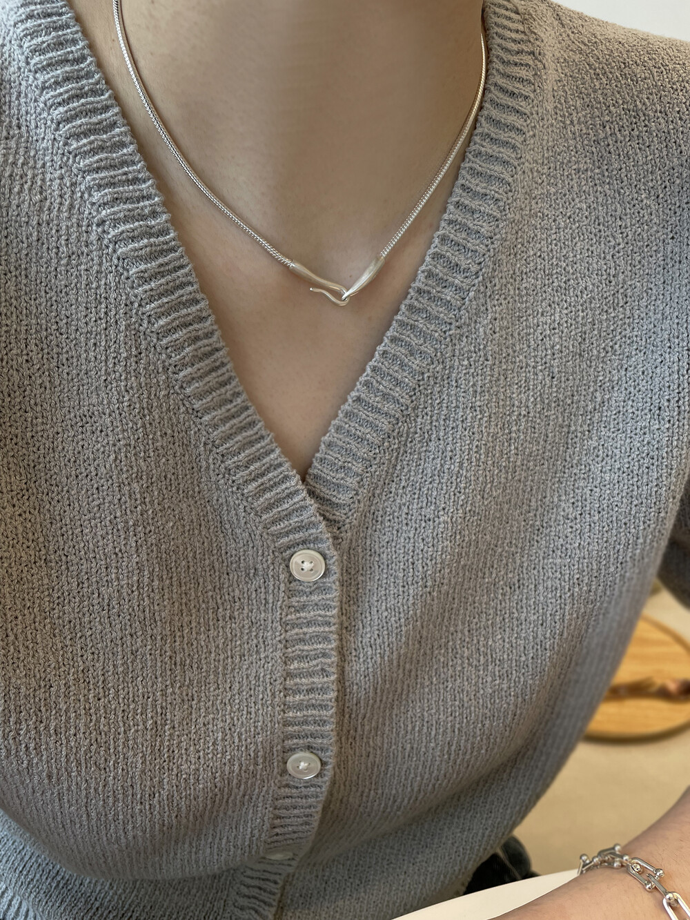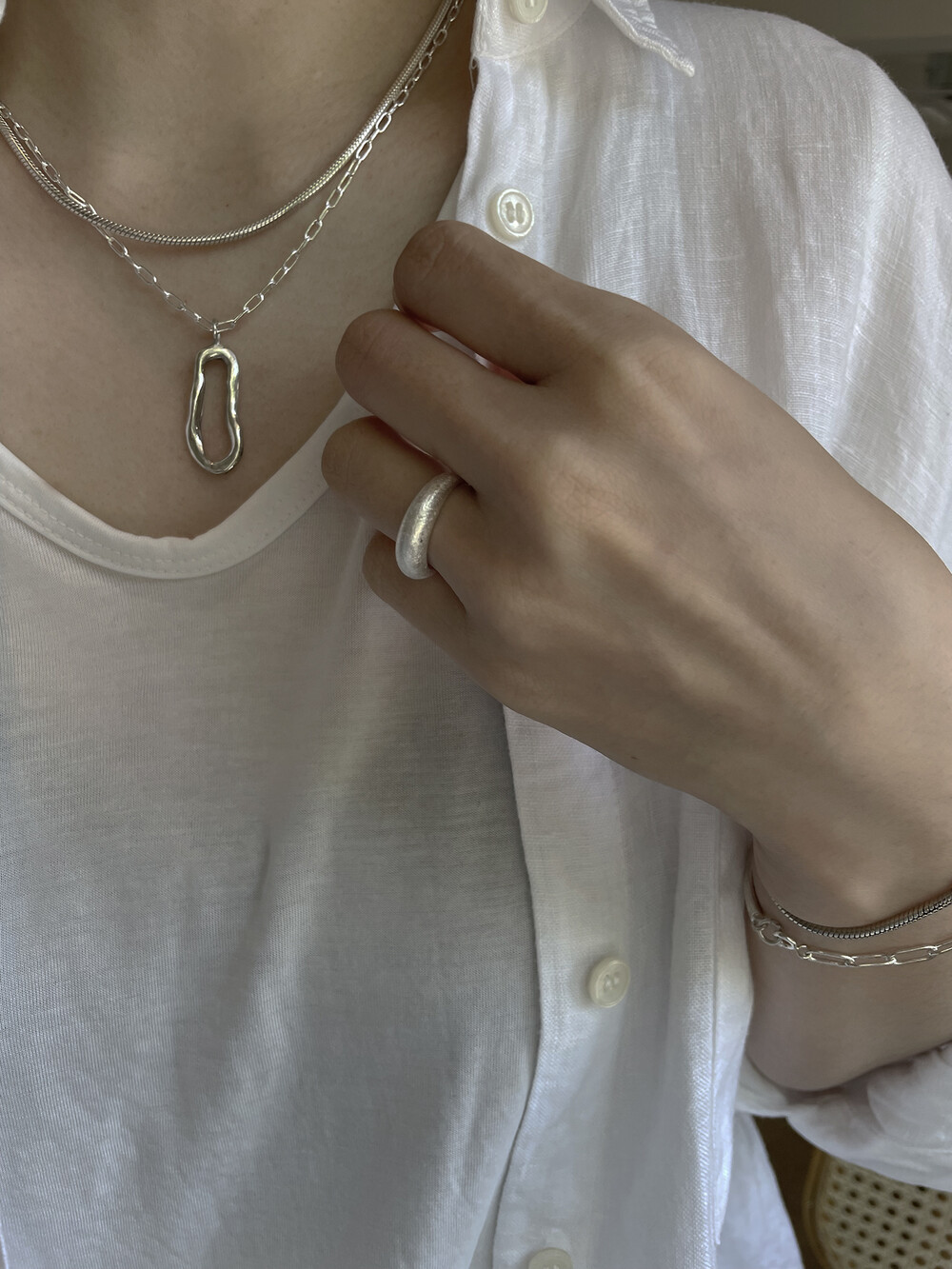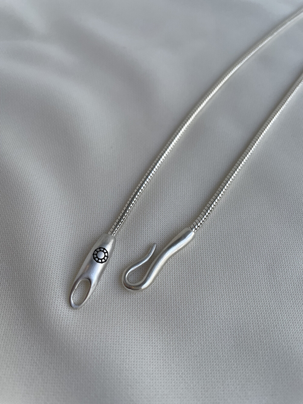 매트하며 유니크한 고리 장식이 특징인 목걸이입니다.