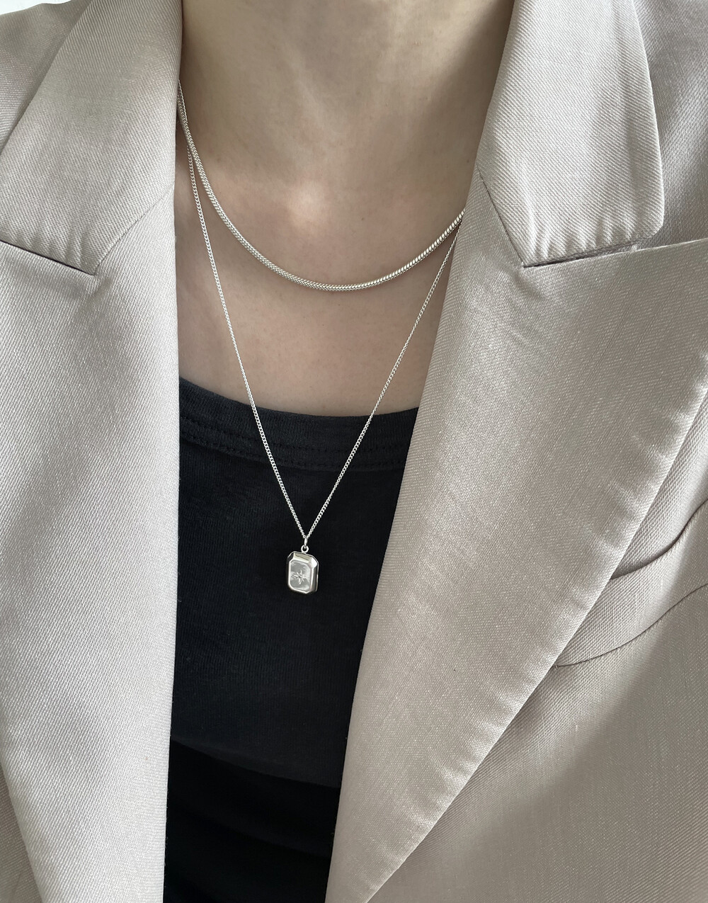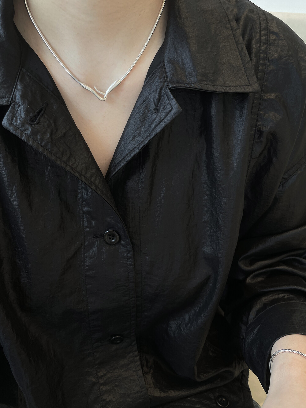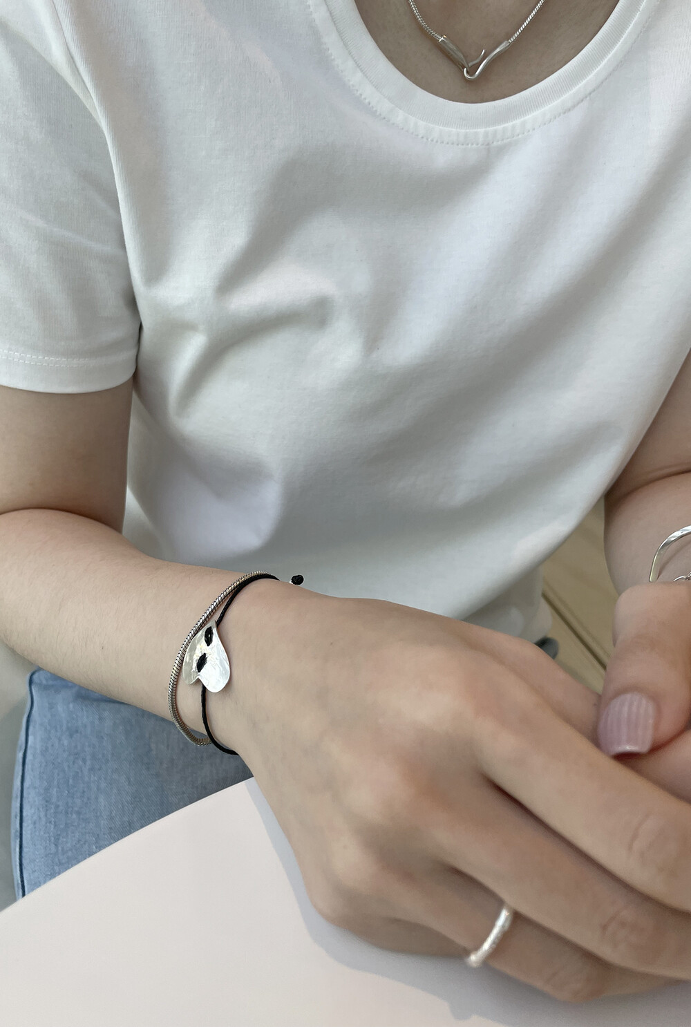 은(Sterling Silver)의 특성상 수분, 땀, 화장품 등에 자주 노출되거나 장기간 미착용 시 검게 변색될 수 있습니다.