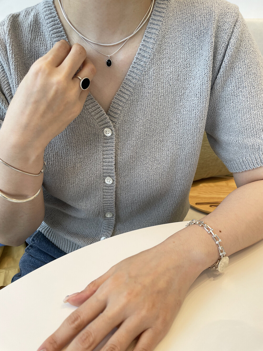 검게 유화 처리한 은제품과 원석이 세팅된 제품은 세척제 사용을 금해주세요.