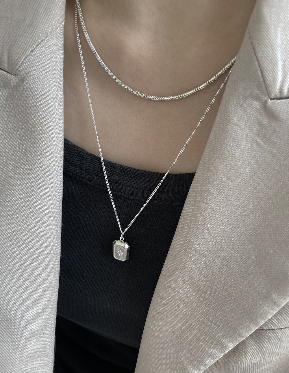 남녀 누구에게나 잘 어울리는 두께의 스네이크 체인에