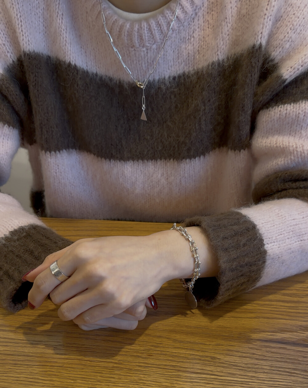 은(Sterling Silver)의 특성상 수분, 땀, 화장품 등에 자주 노출되거나 장기간 미착용 시 검게 변색될 수 있습니다.
